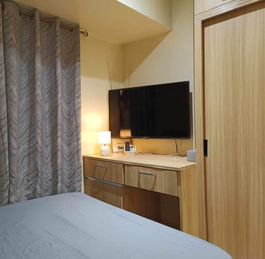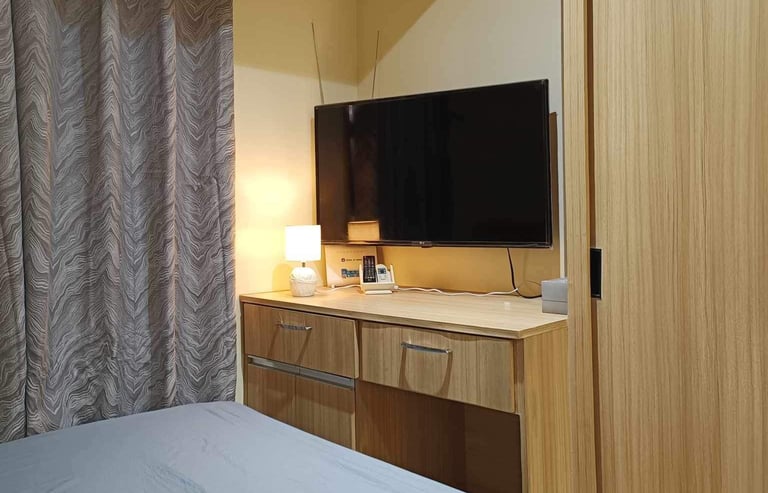 📺 Smart TV perfectly positioned for easy viewing from the bed
